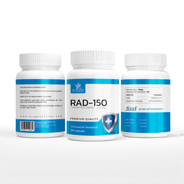 RAD-150 binds to androgen receptors in skeletal muscle tissue. When these receptors are activated, they cause a host of downstream effects including boosting muscle hypertrophy. RAD 150 has also been shown to increase the rate of fat loss and improve strength. RAD 150 is an anabolic ester, it mimics the role of natural testosterone in the body as compared to nonesterized SARMs however it benefits the user from no androgenic effects.